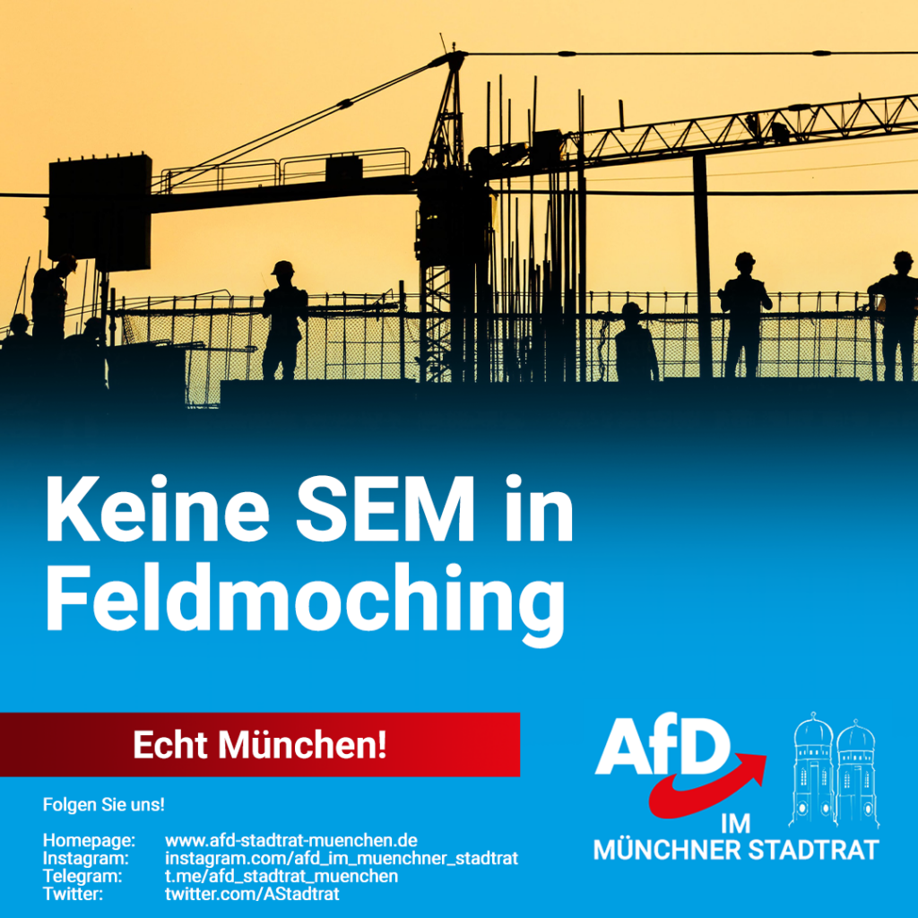 Die Städtebauliche Entwicklungsmaßnahme (SEM) im Münchner Norden nimmt Gestalt an. Die AfD-Gruppe im Münchner Stadtrat hat schon vor Monaten gefordert, dass die bereits einmal eingestellte SEM nicht erneut auf das Tableau kommt. Leider vergebens. Trotz unserer Einwände, dass die Einwohnerzahlentwicklung der Landeshauptstadt durch die negativen wirtschaftlichen Ausblicke und die Auswirkungen der Coronamaßnahmen nicht absehbar ist und eine zunehmende Verdichtung im Münchner Norden sich negativ auf die Lebensqualität der Anwohner auswirken würde, hält die Stadt weiter an ihren Plänen zur Schaffung eines neuen Stadtviertels fest.