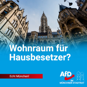 München vergibt Sozialwohnungen an Hausbesetzer. Die AfD-Stadtratsgruppe hat sich erkundigt, wie die Stadt geförderten Wohnraum an Bedürftige vergibt. Die entsprechende Anfrage finden Sie hier:
