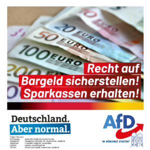 dem kommunalen Sparkassenträger stehen laut Auskunft der Münchner Stadtkämmerei im Bereich der bankwirtschaftlichen Betätigung der Sparkasse München keine Mitwirkungsbefugnisse zu.[1] Dennoch möchten wir, die Vertreter der AfD im Münchner Stadtrat, es nicht unterlassen, ein zuvor als Antrag[2] eingebrachtes Anliegen erneut vorzubringen, dieses Mal direkt an Sie, die Vorstandschaft der Stadtsparkasse München, adressiert. Konkret ersuchen wir Sie, die zunehmenden Filialschließungen im Stadtgebiet einzustellen und stattdessen in jedem Bezirksteil eines Stadtbezirkes wahlweise den Bestand einer Stadtsparkassenfiliale oder eines Geldautomaten sicherzustellen, bzw. dort wo dies bereits nicht mehr gegeben ist, neu zu schaffen.