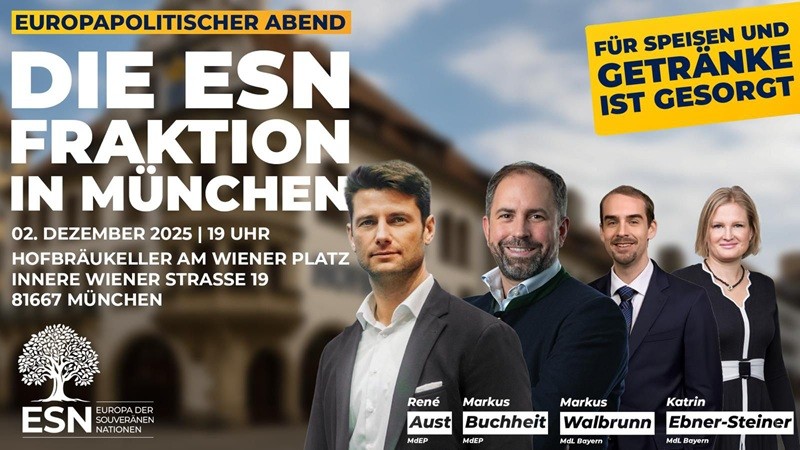 Die ESN-Fraktion lädt Sie herzlich am 02. Dezember 2025 um 19:00 Uhr zu einem europapolitischen Abend im Münchener Hofbräukeller ein.